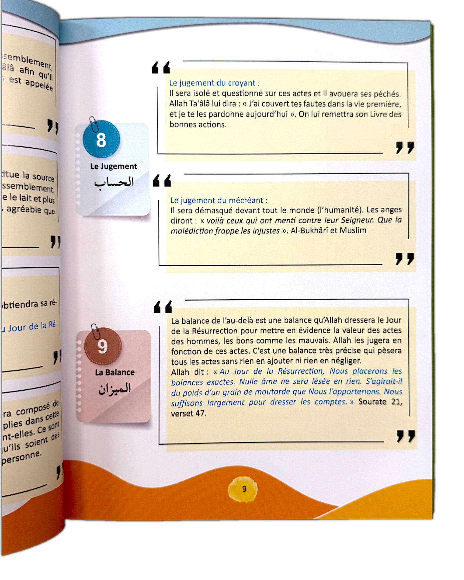 - Les piliers de la croyance : Dieu, les anges, les Livres, les Messagers, la Résurrection et le destin